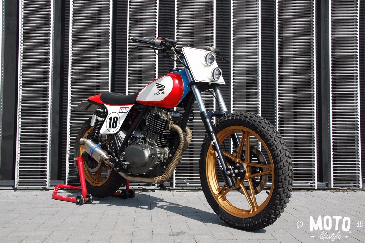 Enter Sean Skinner of Motorelic, who built this incredible 1982 FT500, featured on Pipeburn earlier this year. The bike, decked out in Honda racing colors, was a big hit in the customs world. Recently, we heard from Sjoerd Veenstra of Motolifestyle, who had shot a bike that looked strikingly similar: this Honda FT500 street tracker by Tim Olgers of The Netherlands.
