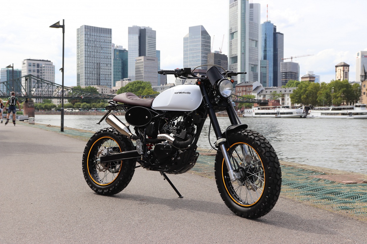 Eugenio decided to take the company to the next level, moving back to Europe and establishing a chain production process based out of China. The company’s Tracker 125i model is based off a custom 125cc tracker/scrambler built in the original Verve Moto garage.