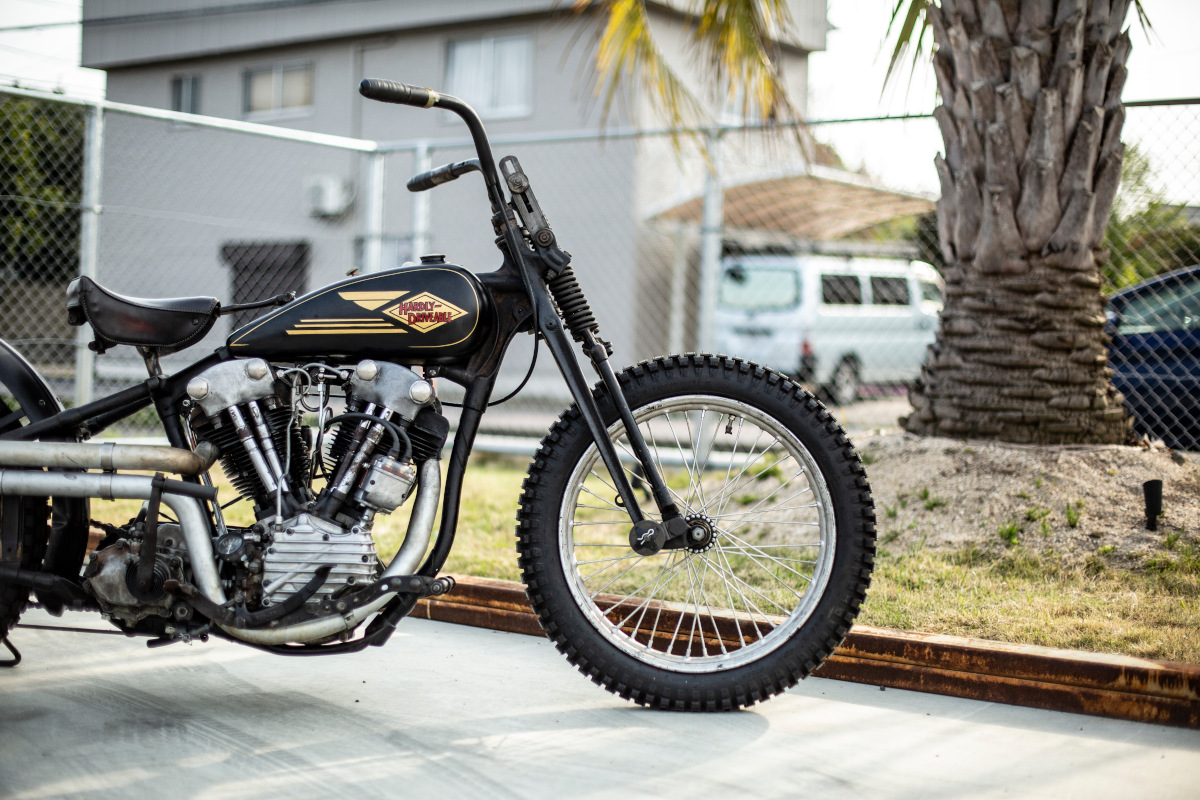 Our new friend Koji Hamada of Japan’s Hammer Sycle has lived a life deeply entwined with old Harley-Davidsons, having bought his first H-D (an ’84 FXR) at the age of 19 and never looking back. Although he totaled that first bike, breaking both arms badly enough to warrant surgery, he was hooked: