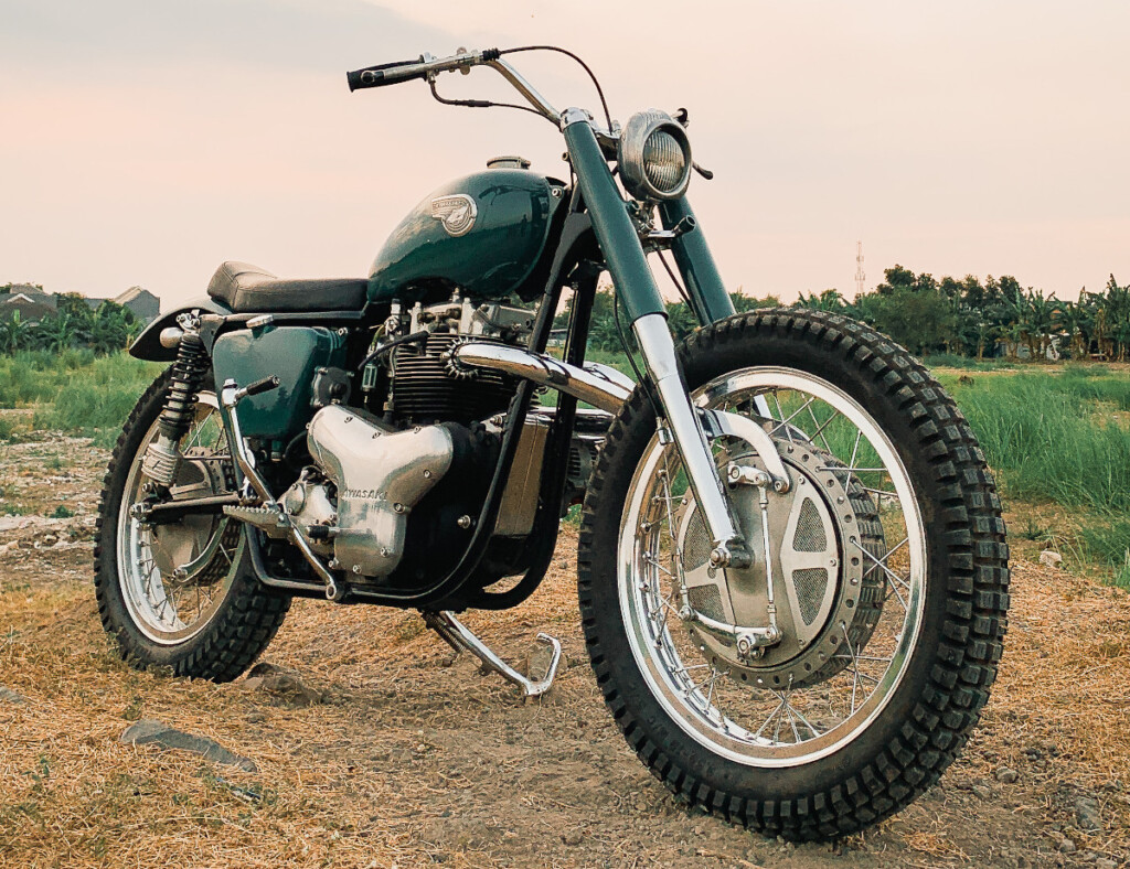 Recently, we got in touch with Deddy Indra — aka “Daddy RFG” — the headman of Rocket Fantasy Garage in Sidoarjo, Jawa Timur, Indonesia. He had a client with a 1967 Kawasaki Meguro 650, who wanted to transform the bike into more of a vintage scrambler / desert sled akin to a Triumph or BSA of the same era.