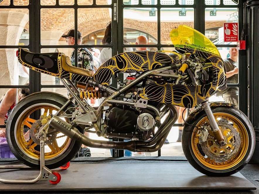 Harris Magnum 2 with Suzuki GSX1100 Katana engine, Fireblade forks, and Astralite wheels.