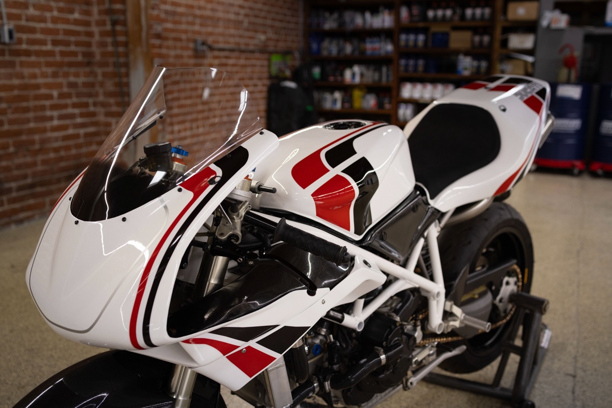 I’ve built (and raced) many 748/916/996 era Desmoquattro-powered Ducatis and have amassed a fairly sizable collection of parts over the years. Digging into my collection of spares, I pulled the missing items off the shelf and by day two we had a functional running machine.