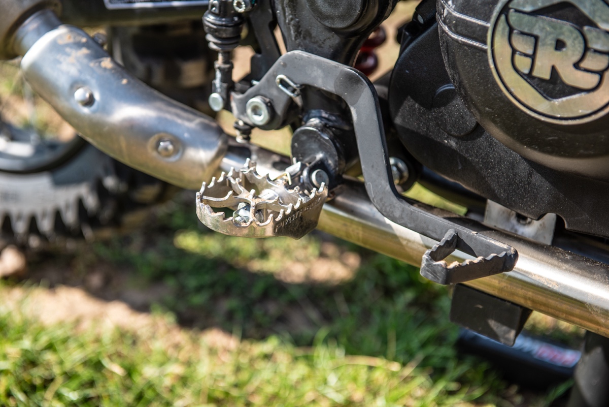 We also changed the footpegs for “pivot pegs” and changed the gearing via custom-made sprockets.