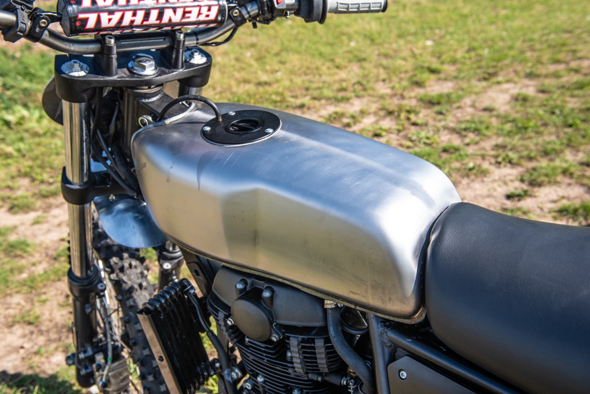 The fuel tank conversion and also making a one-piece seat to give it the dirt bike look.