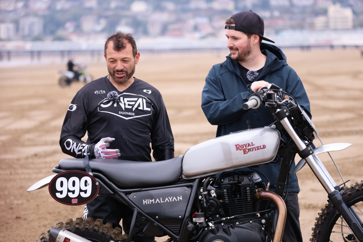 However, Max Hind of the 999lazer YouTube channel — along with test rider / mechanic / builder Sean Smith — had the idea to transform a crash-damaged £850 Himalayan 411 into motocrosser…and enter it in the 2025 Weston Beach Race.