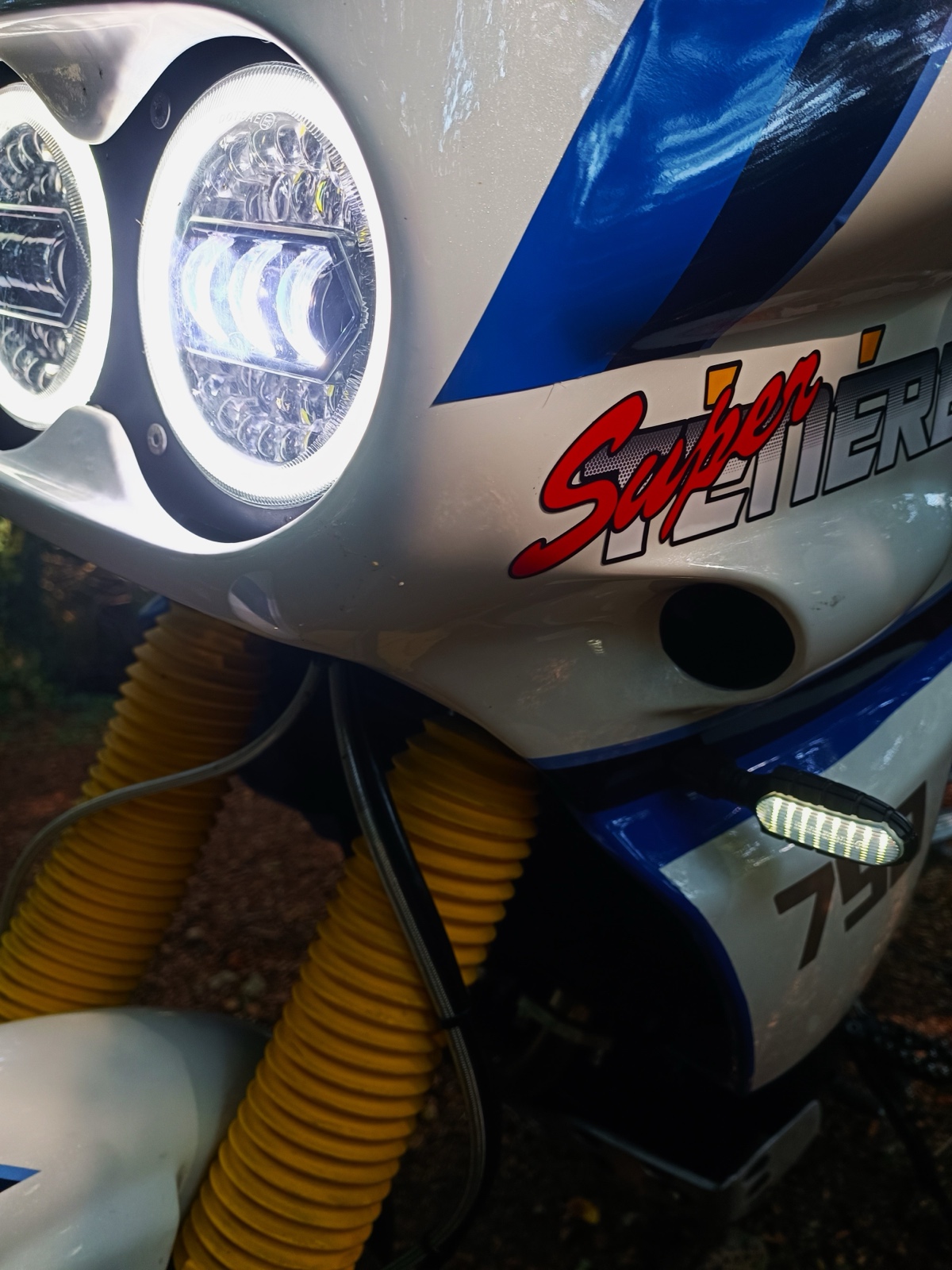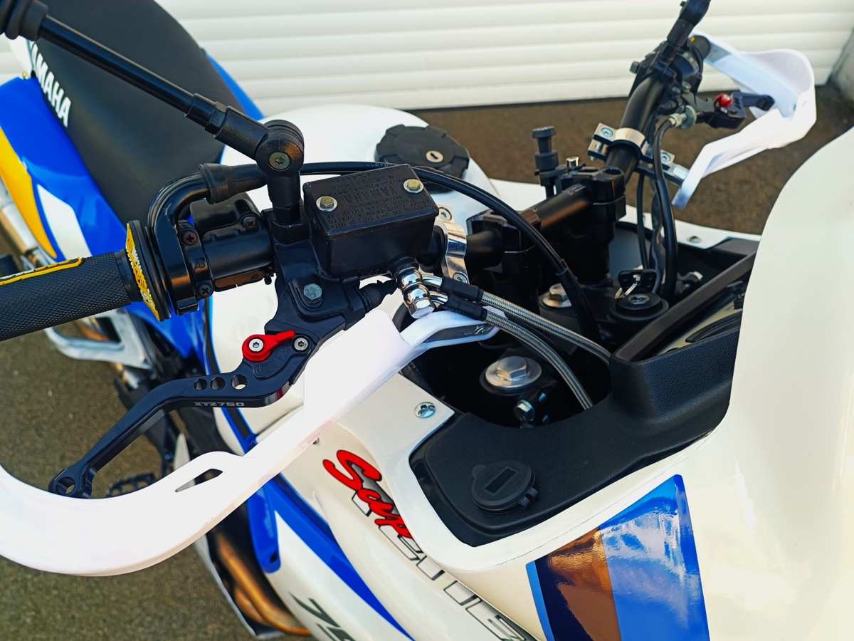 It’s really amazing how this bike in those Yamaha original colors and that full LED lighting system can catch attention! I guess those early full body Dakar Rally style bikes are still big in most people’s minds. For the eldest, it also reminds a lot of memories which are feeling reactivated with some new-age accessories including modern tires, aero brake lines, big bar, good grips and pegs.