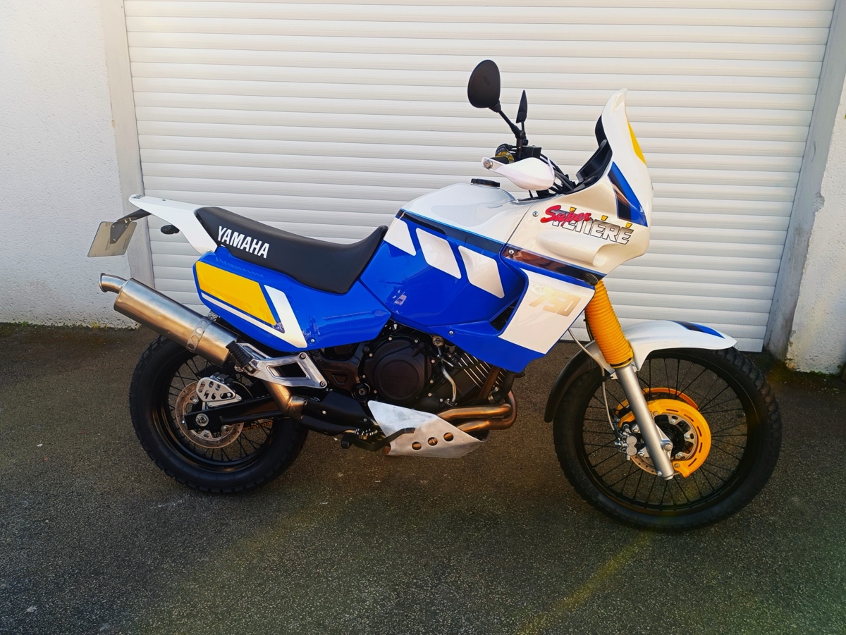 This one’s an ’89 Yamaha XTZ750 Super Ténéré, full stock except the full stainless exhaust from Laser, a German manufacturer back in the days.