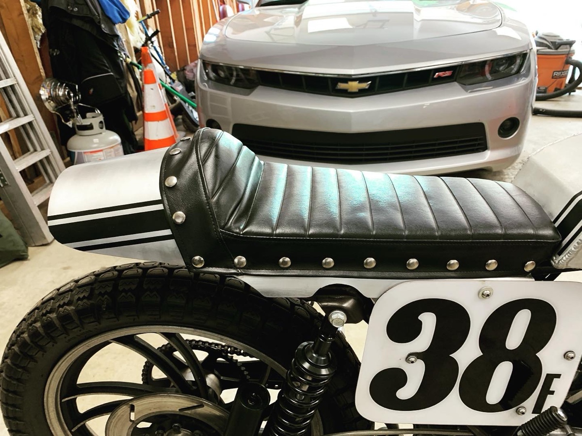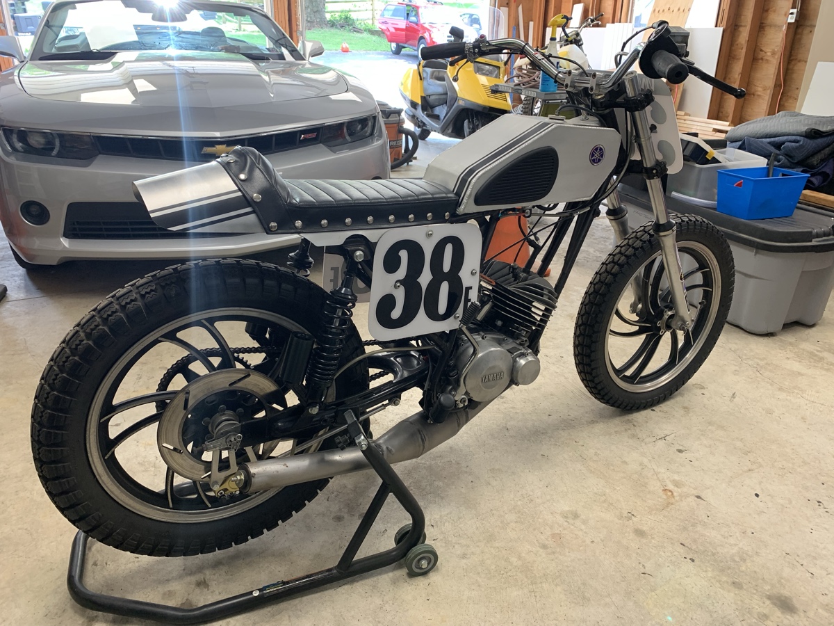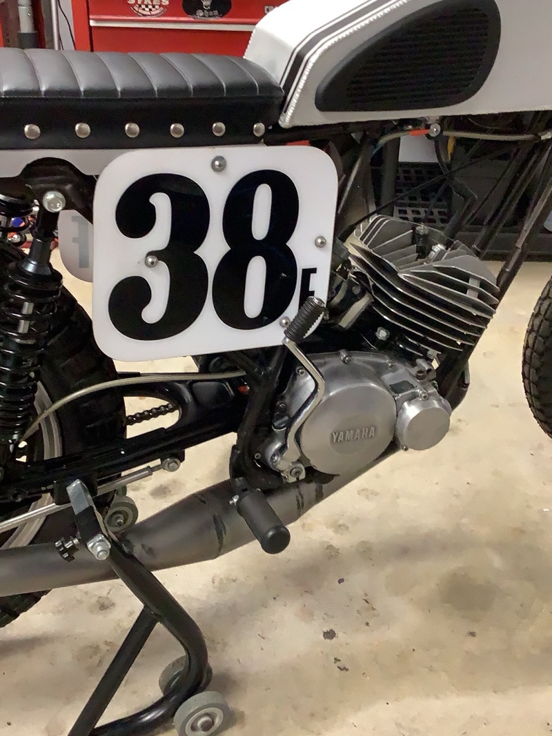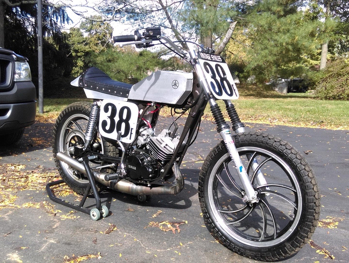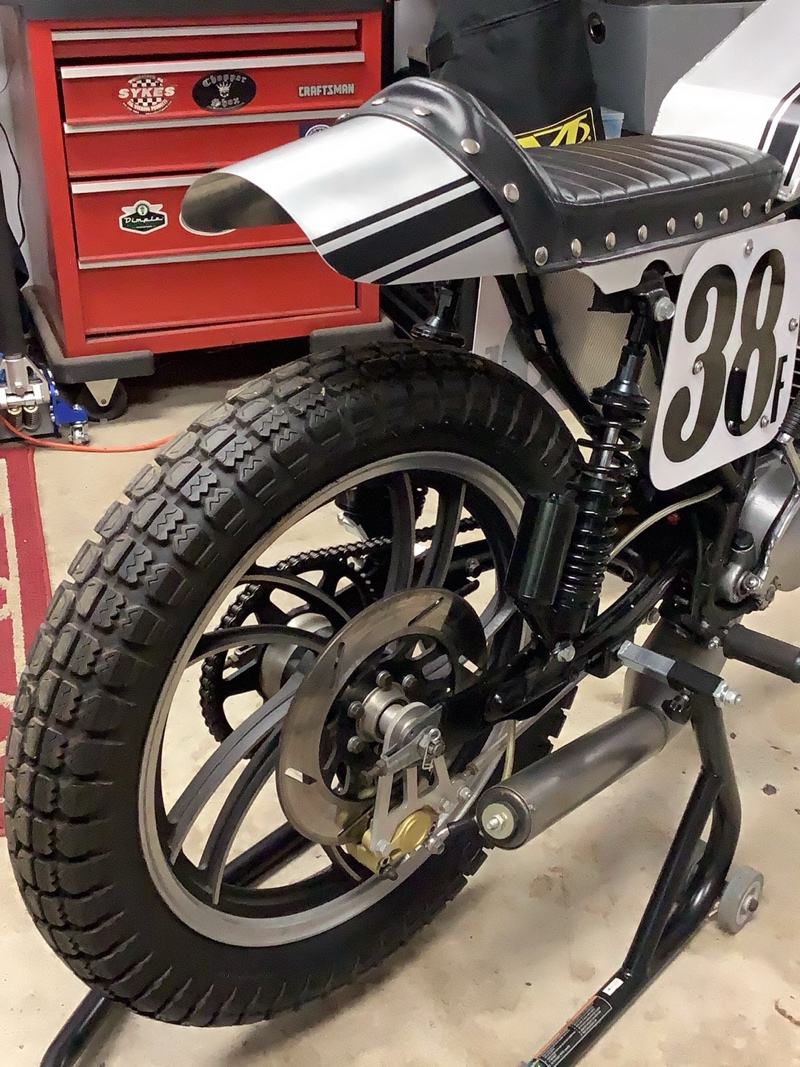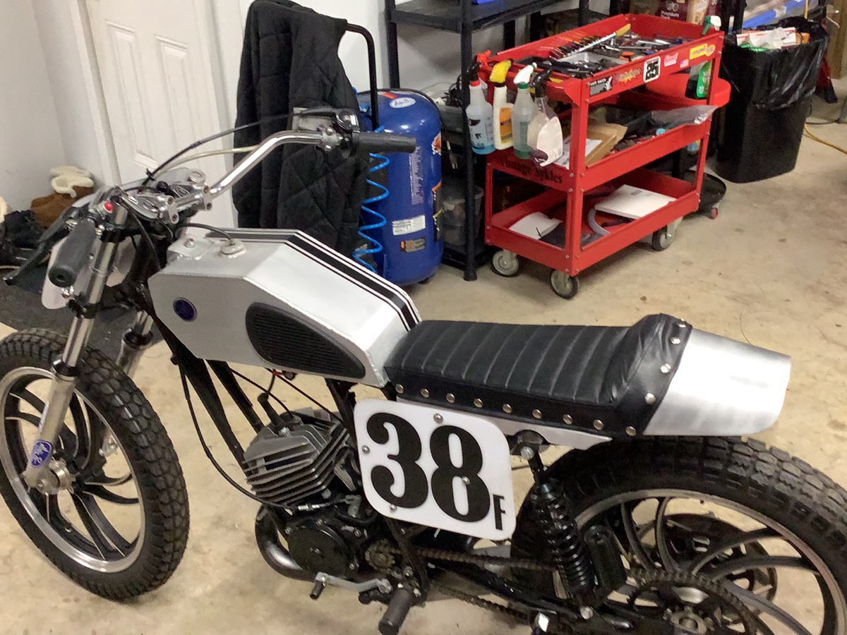 I decided to build this little flat tracker to copy what we used to run back in the 70s. This would be your typical TT scrambles bike or short track bike. Guys would convert street-legal enduro bikes into TT scramble bikes and flat trackers.