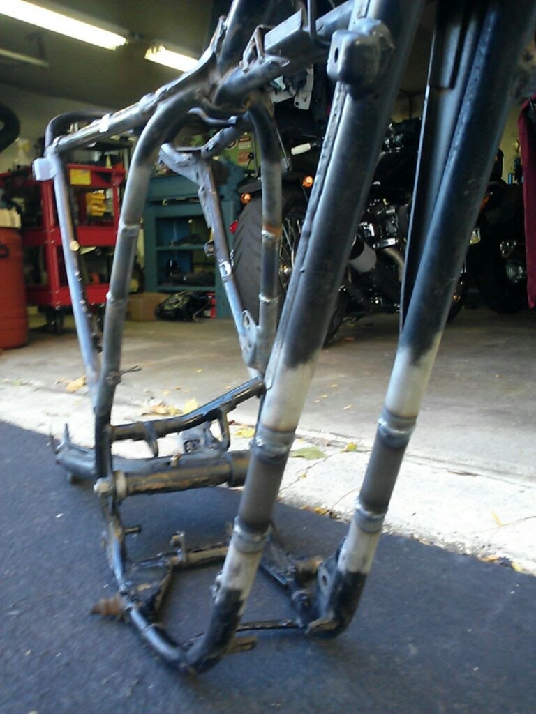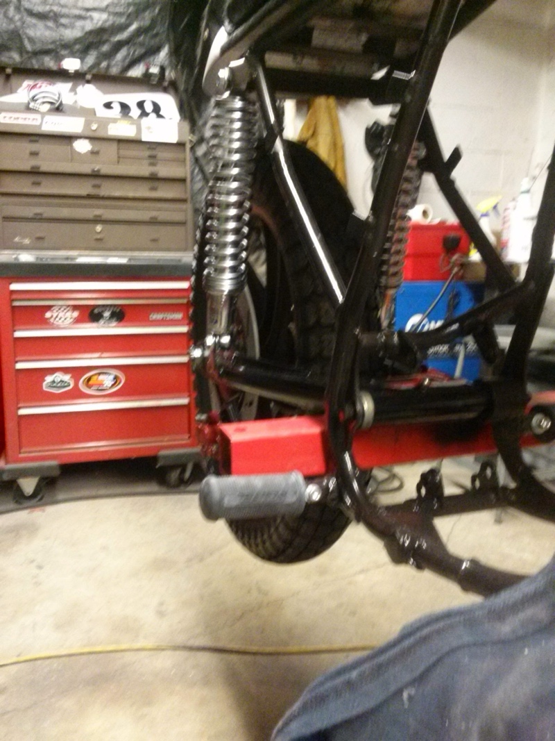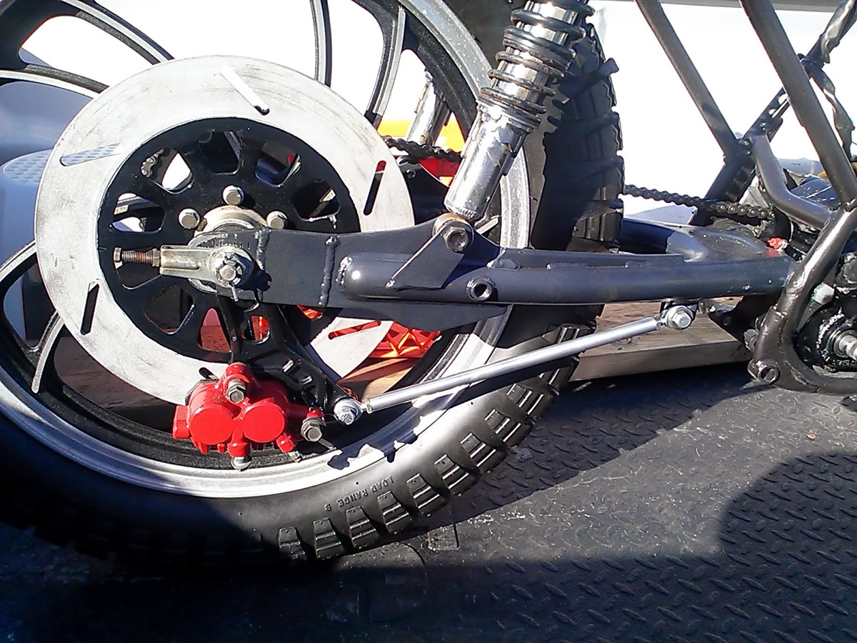 This would mean cutting the frame horizontally in half and welding in extensions and the frame rails and also extensions on the swingarm.