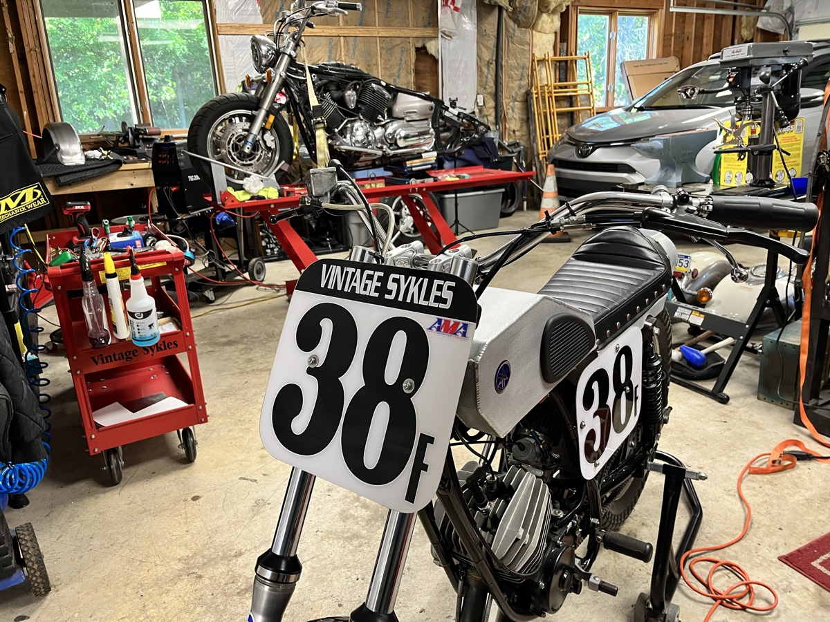 I built it to bring to our racing reunion which we have every year at Piston Popper Speedway in Parkersburg Pennsylvania. We have a 60s and 70s AMA racing reunion where all of us competitors from the 60s and 70s get together and get to do parade laps at a sanction event on the track that we actually raced at.