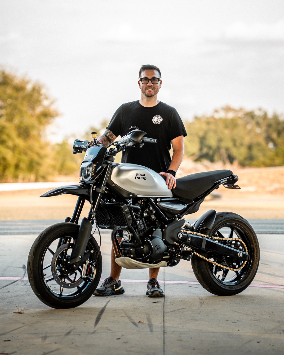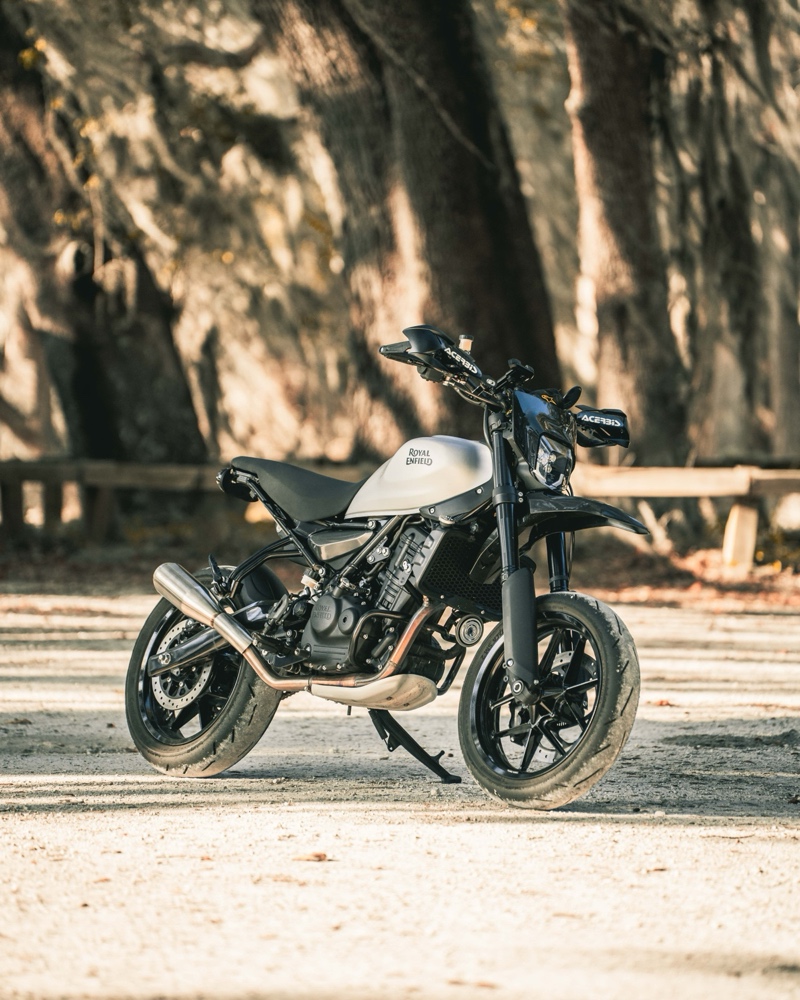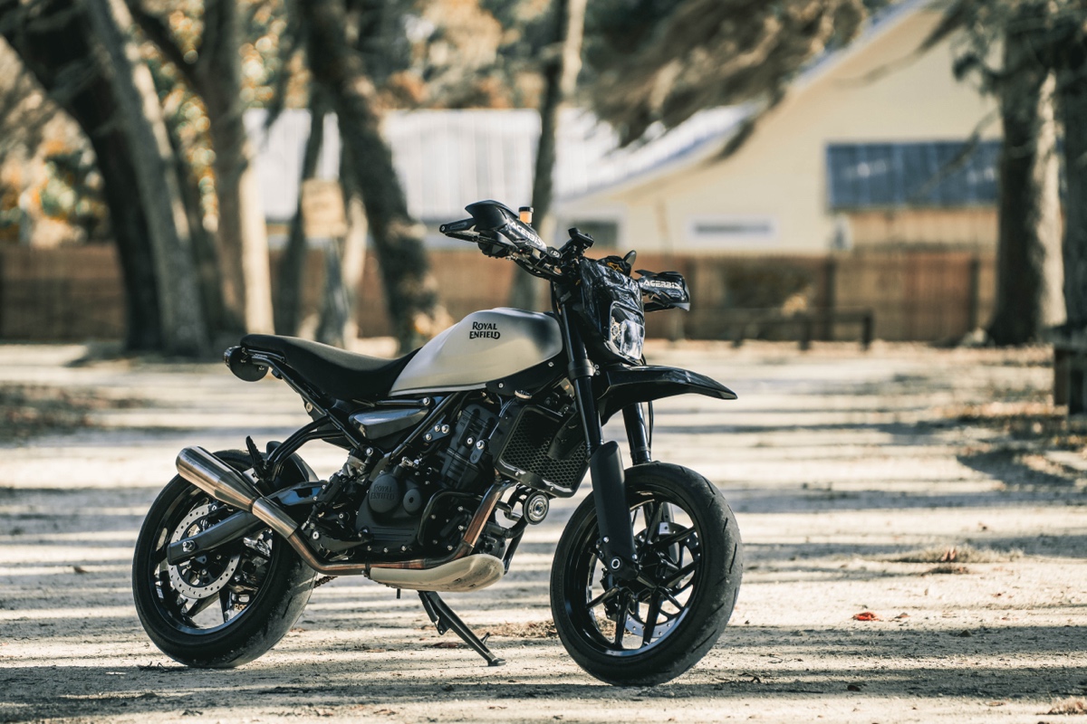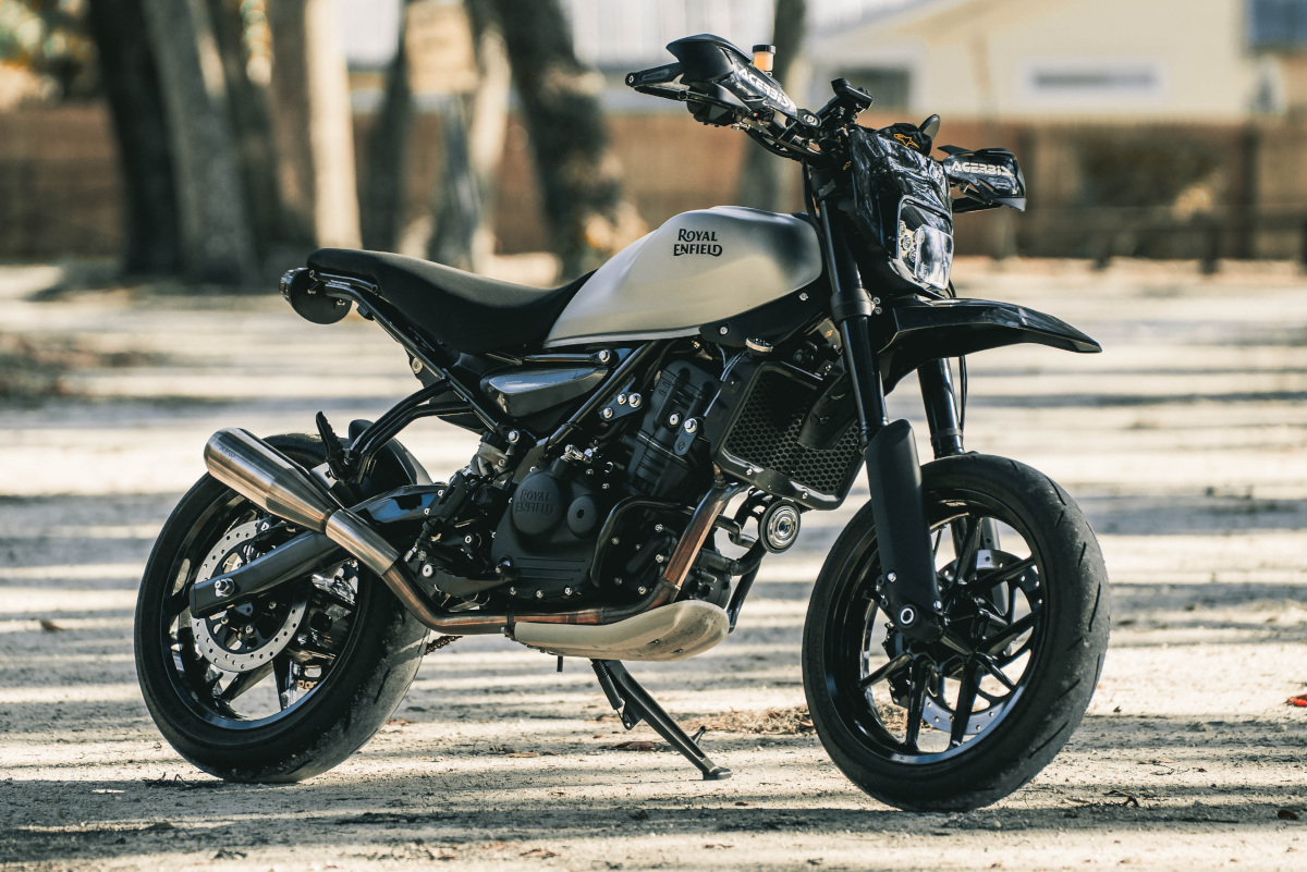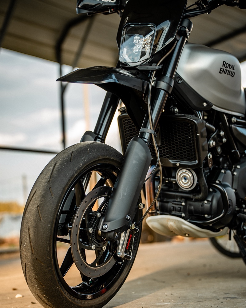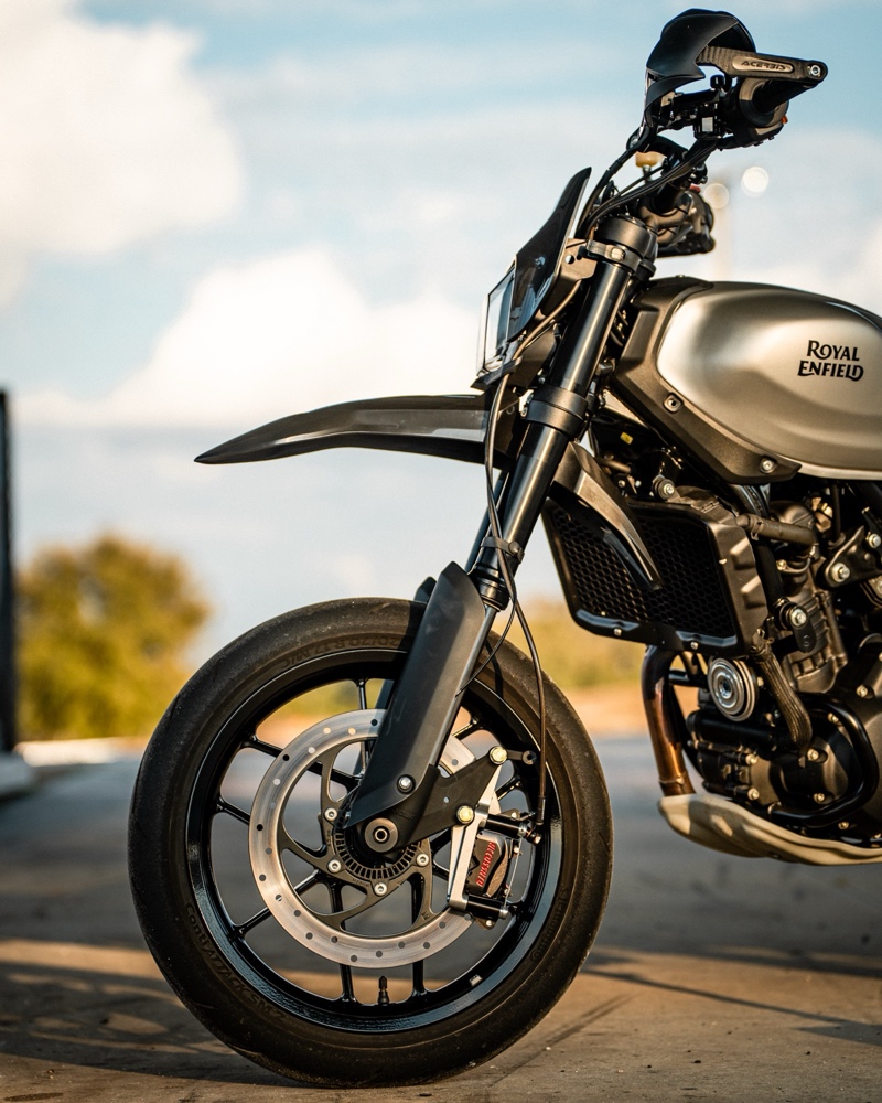 I’m the Royal Enfield North America brand ambassador for the Guerrilla 450, and I saw it as the perfect platform for a supermoto conversion. This build was both a personal passion project and a way to showcase the versatility of the platform.
