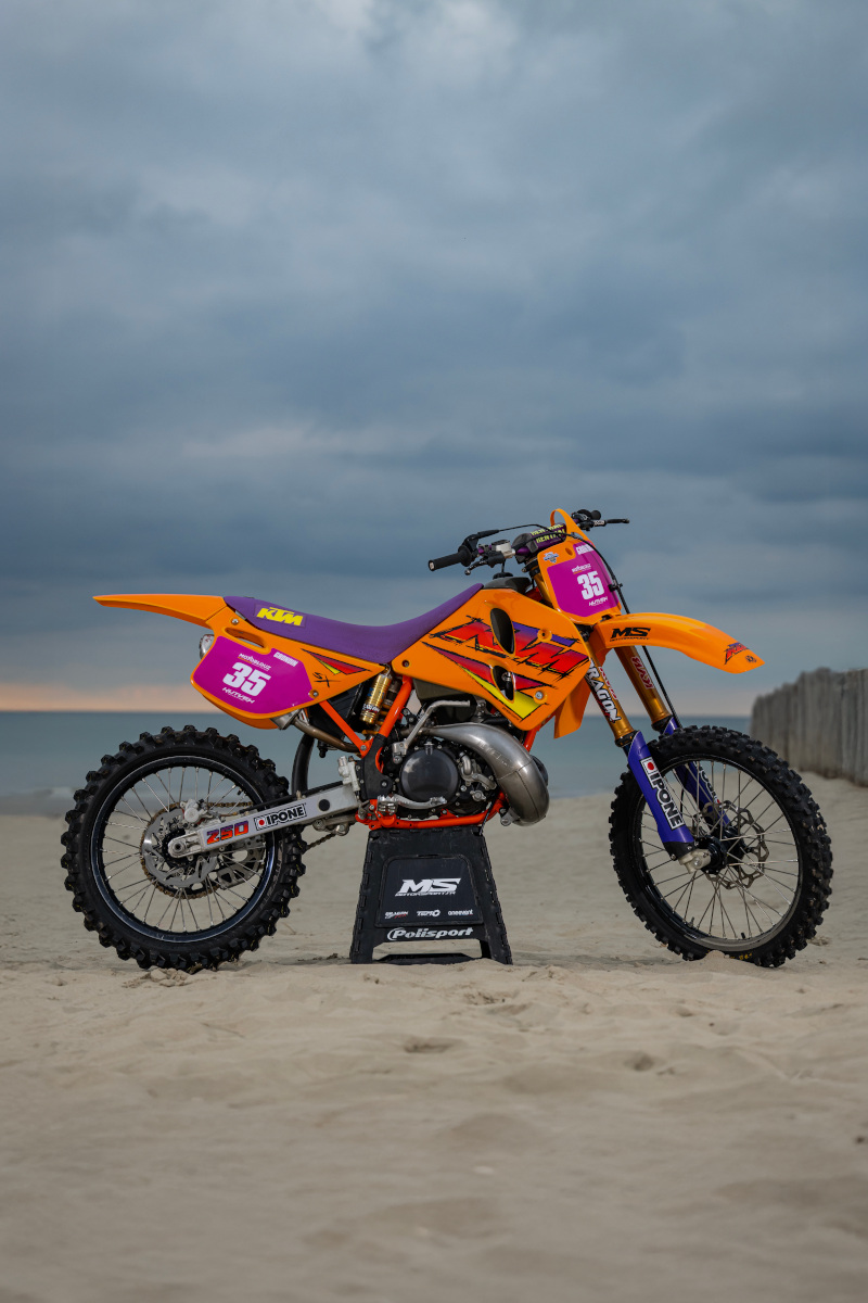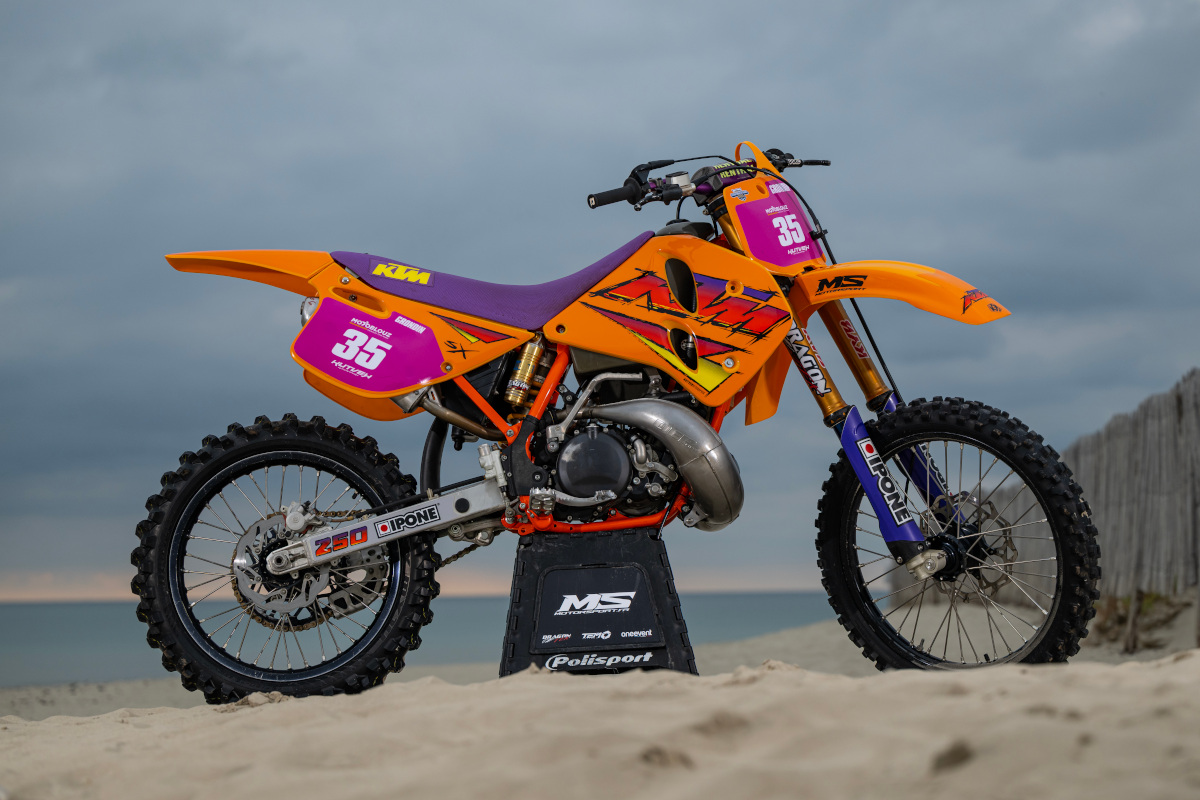 It’s a 1996 KTM 250 SX, fully restored by MS Motorsport workshop, located in the southwest of France (Hossegor).